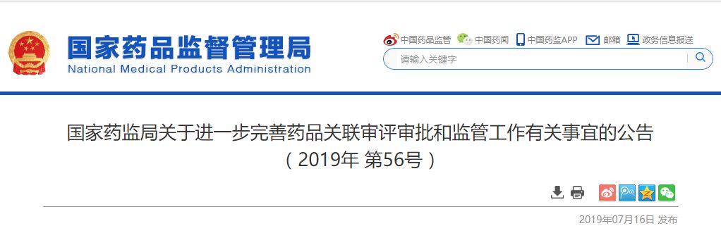 为落实中共中央办公厅、国务院办公厅《关于深化审评审批制度改革鼓励药品医疗器械创新的意见》(厅字〔2017〕42 号),原食品药品监管总局发布了《关于调整原料药、药用辅料和药包材审评审批事项的公告》(2017 年第 146 号),现就进一步明确原料药、药用辅料、直接接触药品的包装材料和容器(以下简称原辅包)与药品制剂关联审评审批和监管有关事宜公告如下: