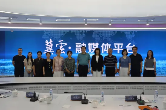 2024年9月9日,河北省医药行业协会书记刘骁悍一行6人到长城新媒体集团参观调研,并进行深入的座谈交流。长城新媒体集团党委副书记王兰香,长城新媒体(河北)股份有限公司总经理贾芳,纪委书记、监事会主席赵剑锋,河北省医药行业协会副会长陶丽敏、副会长兼秘书长毛谕明及协会人员参加会议。